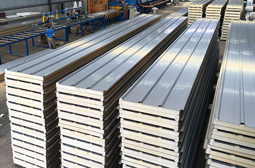 彩鋼夾芯板是一種由兩面彩涂卷,中間為芯材(巖棉,玻鎂,泡沫,擠塑,聚氨酯,硫氧鎂,紙蜂窩,鋁蜂窩,酚醛,特殊的還有石膏) ,然后由膠水(異氰酸酯膠水),經過數控機床加工而成的彩鋼巖棉板夾芯板,玻鎂夾芯板,泡沫夾芯板,擠塑夾芯板,聚氨酯夾芯板等等。